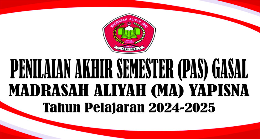 Diberitahukan kepada seluruh Siswa-siswi MA Yapisna, bahwasanya untuk kegiatan Penilaian Akhir Semester (PAS) Gasal, akan dilaksanakan mulai tanggal 18-25 November 2024.